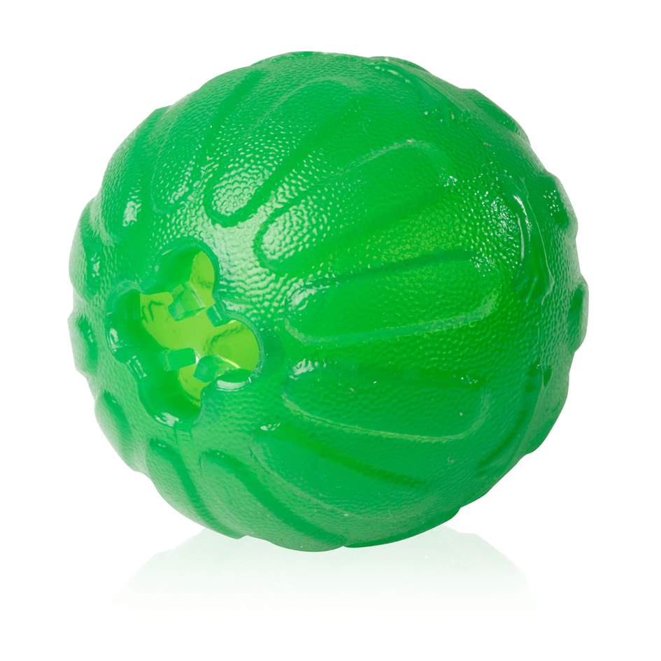 Kestävään, mutta joustavaan aktivointipalloon voit lisätä nappuloita tai irtoherkkuja tai leikata lelun pään reilusti isommaksi ja täyttää sen pehmeällä ruoalla. Lisähaastetta palloon saa täyttämällä sen ensin ruoalla ja sitten työntämällä sisään pitkän fleecesuikaleen. Koira voi kiskoa suikaleen ulos, jotta nappulat tai irtoherkut pääsevät tippumaan lelun sisältä. Tämä on monen koiran lempilelu jo sellaisenaan pureskeltavaksi!