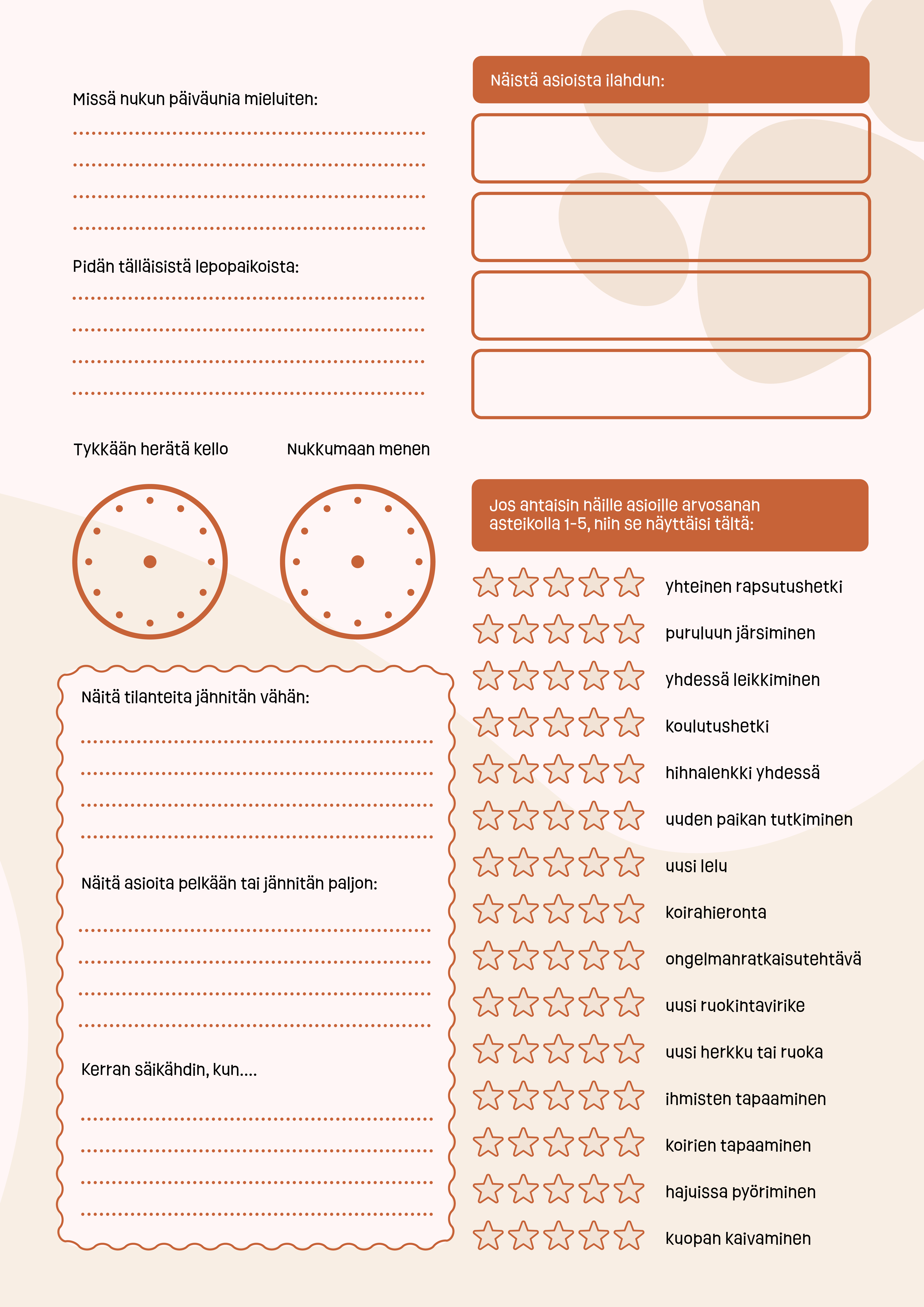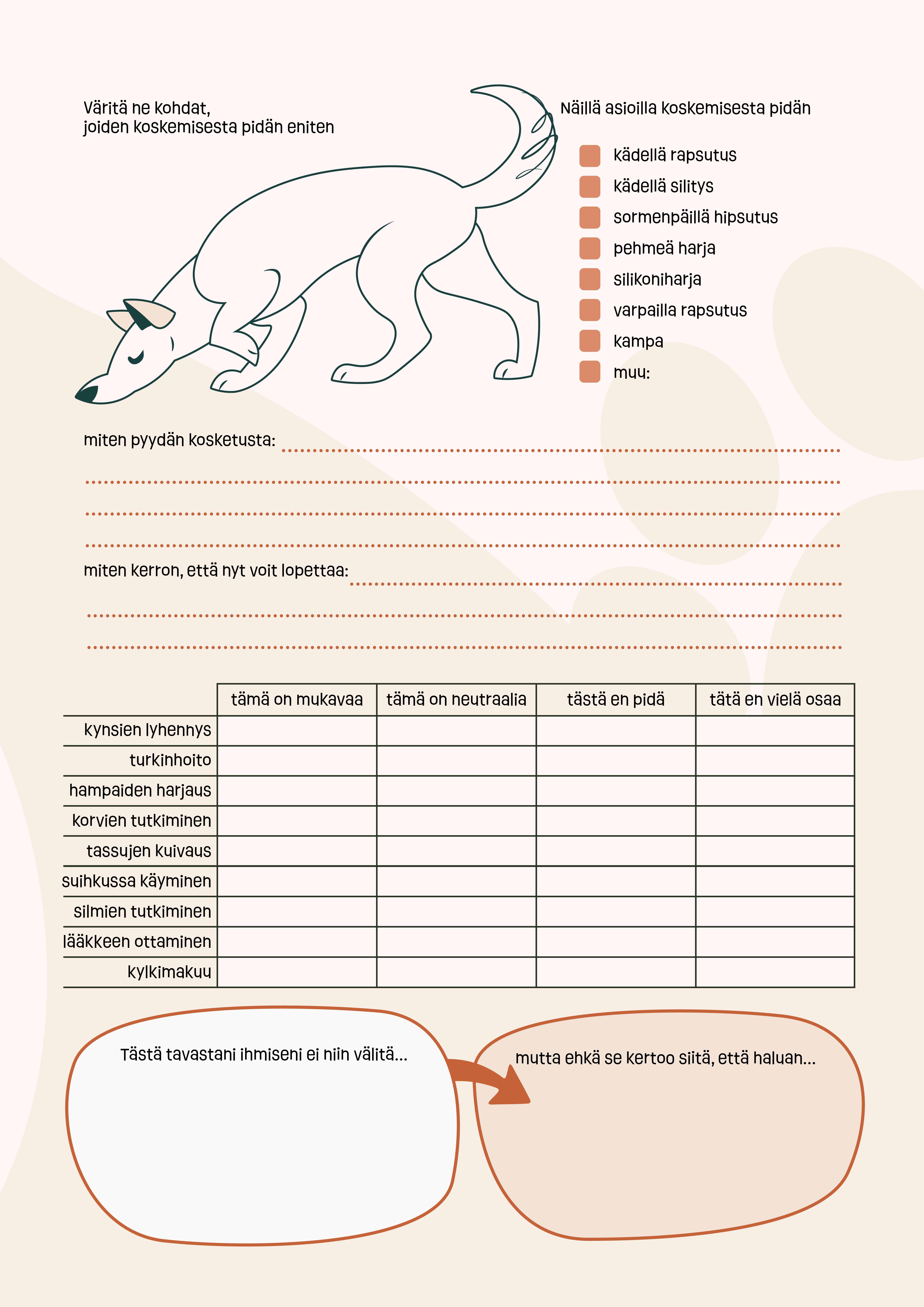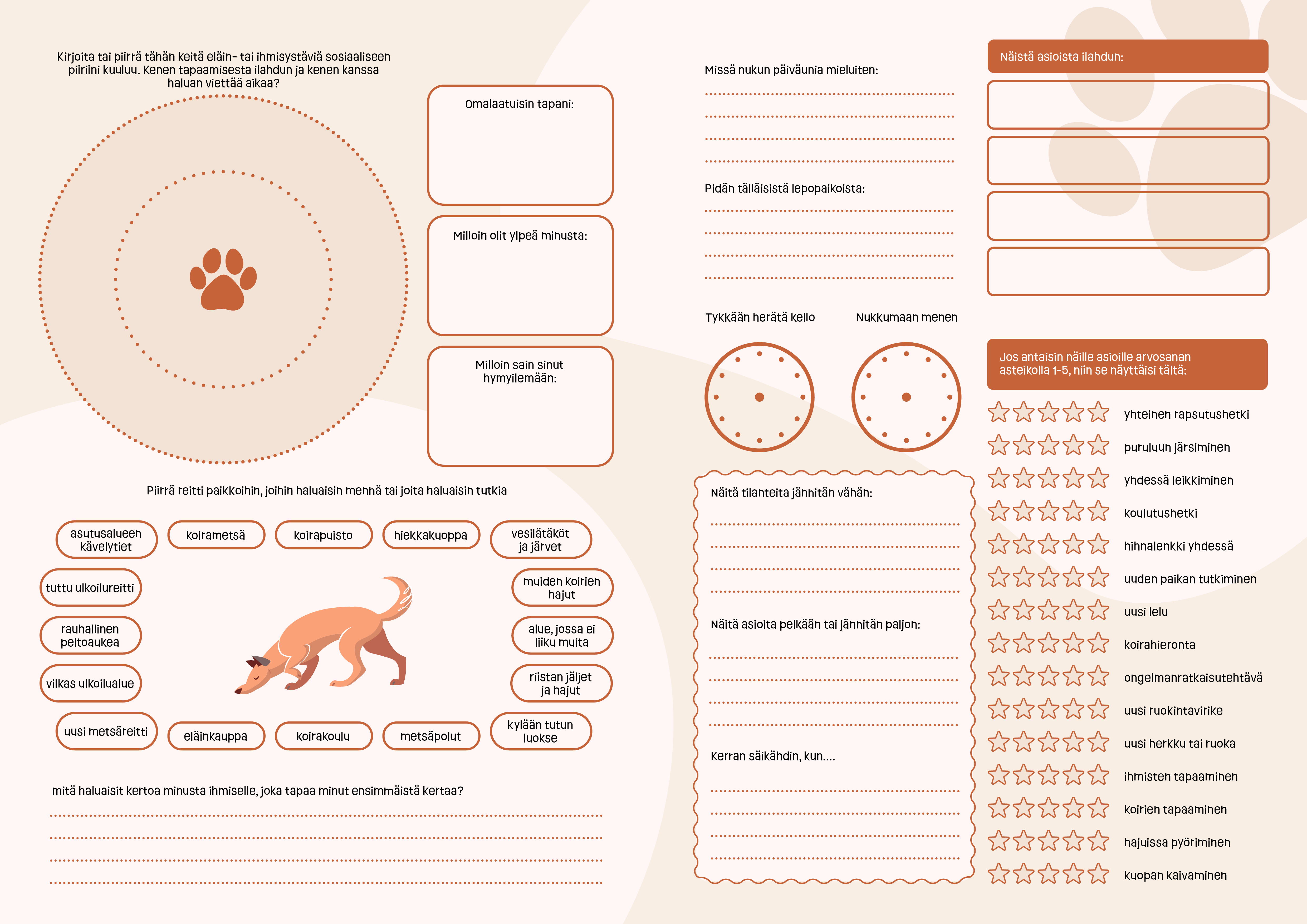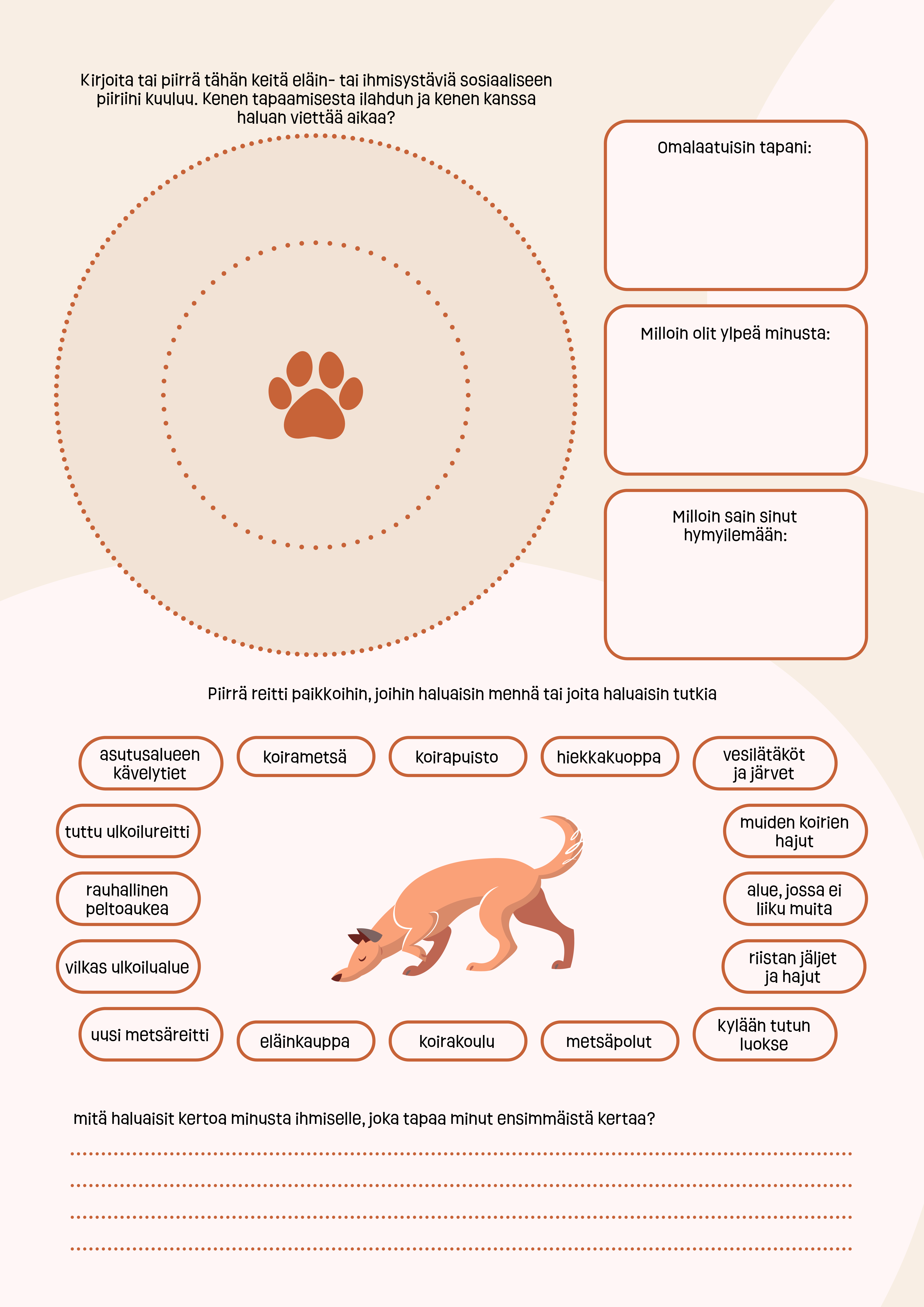 Ystäväkirjan voit antaa tutustuttavaksi ihmiselle, joka on koirasi kanssa paljon tekemisissä. Se voi auttaa esimerkiksi koirasi hoitajaa tutustumaan koiraasi.
