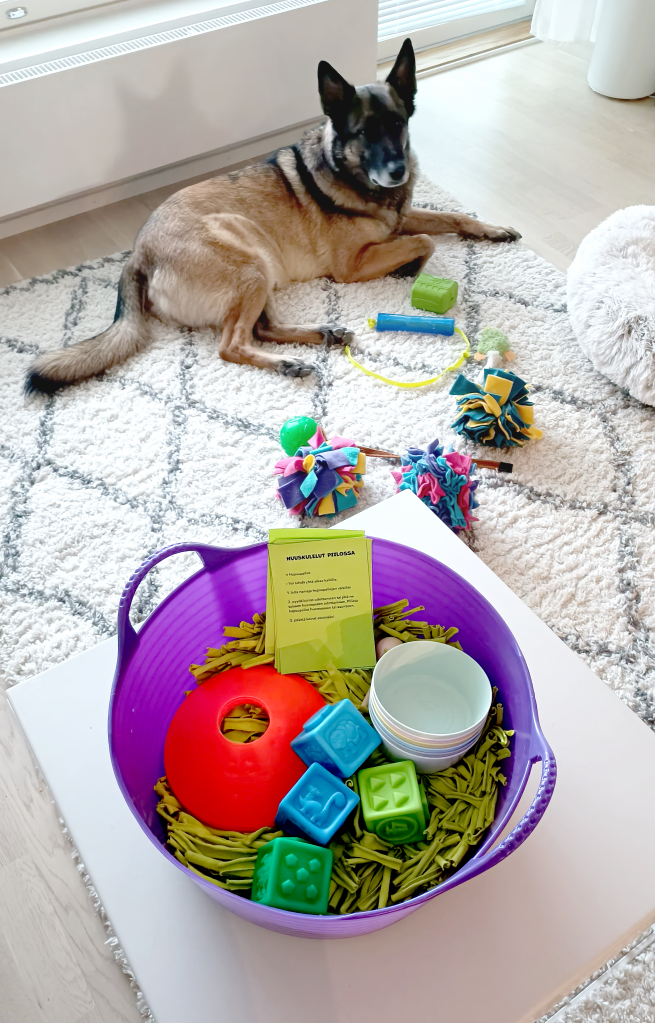 Tällä viikolla joulukalenterista löytyy ideoita yhdessäoloon ja leikkimiseen. Tänään rakennamme koiralle Taitopakin, joka on kokoelma erilaisia leluja, koulutustehtäviä ja yhteisiä puuhia. Taitopakin voit ottaa mukaan reissuun, rakentaa kotiin ideapankiksi tai antaa koiran hoitajalle mukaan.