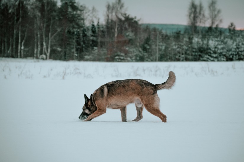 Heitä ruoat maahan, heinikkoon, varvikkoon tai nurmikkoon! Anna koiran nuuskutella omaan tahtiinsa. Voit heitellä ruokaa maahan myös talvella, jos ulkona ei ole kova pakkanen tai koira ei upota kirsuaan kylmään lumeen pitkäksi aikaa.