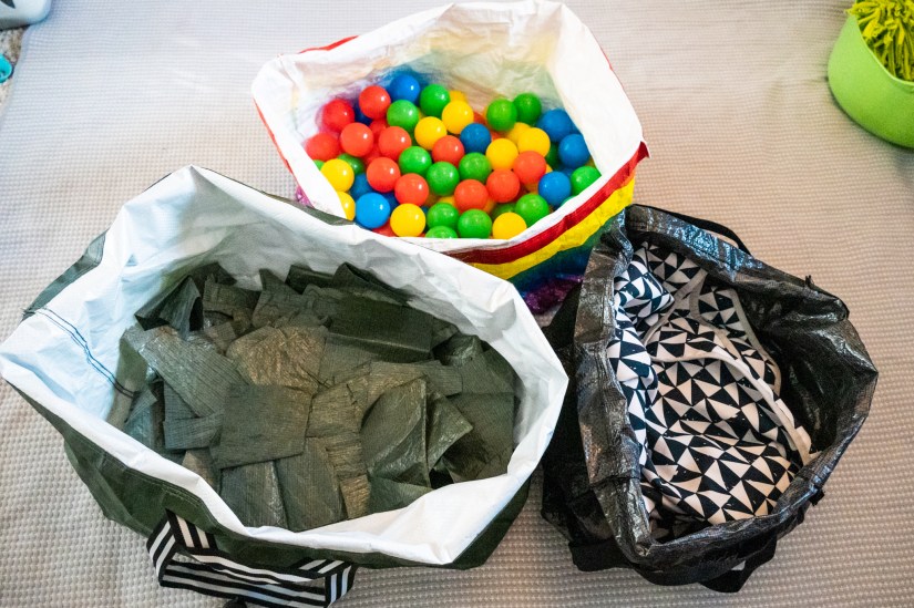 Nuuskukassin voit täyttää esimerkiksi lelupalloilla, vilteillä, pyyhkeillä tai pressun paloilla. Voit käyttää myös sanomalehtisilppua, jos koira ei niele paperinpaloja. Kerää reilusti sanomalehtiä, irrota niitit ja leikkaa isoiksi suikaleiksi. Samaa silppua voit käyttää jonkin aikaa, mutta anna sen kuivua välillä ilmavasti. Pienelle koiralle voit taittaa kassin reunat rullalle, jotta kassi ei olisi liian korkea. Voit leikata kassin kahvat pois, jotta ne eivät varmasti jää koiran jalan ympärille. Valvo aina koiran leikkejä!
