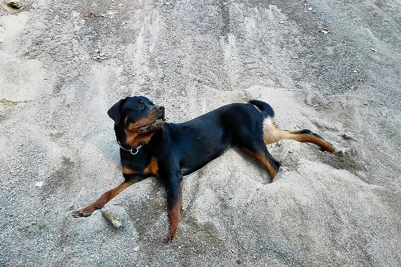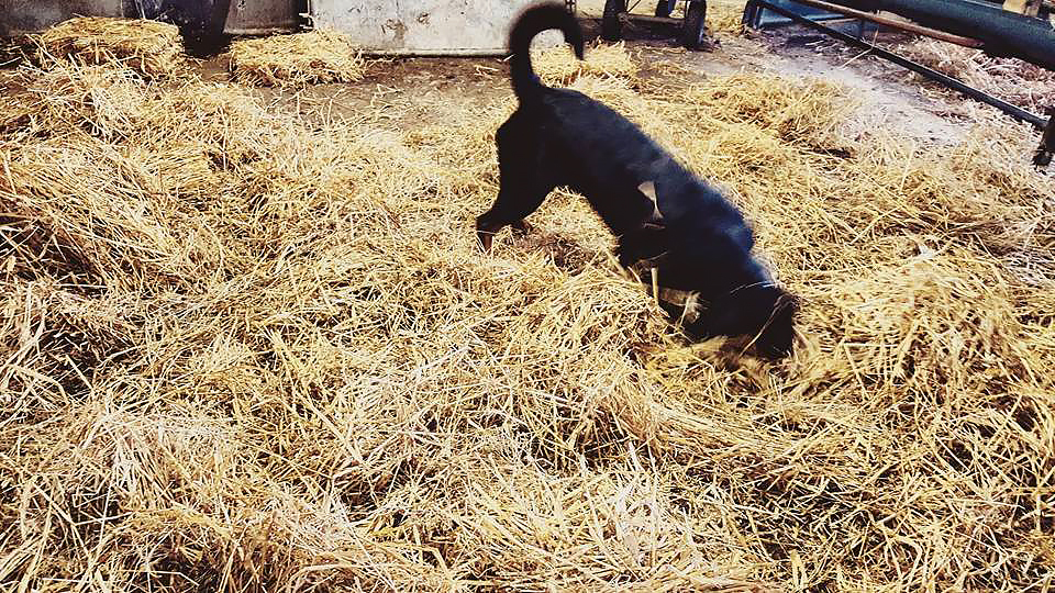Kuvissa on rottweilerini Elva vuosina 2015-2017. Se nautti erilaisten materiaalien kaivamisesta ja niissä möyrimisestä. Kävelimme usein hiekkakuopalle, jossa se sai kaivaa pehmeää hiekkaa. Alla olevassa kuvassa se nauttii päivän askareista lammastilalla möyhimällä kanssani heiniä ja olkia lampaita varten. Elva auttoi mielellään myös puutarhanhoidossa. Se ilahtui suuresti, kun löysi eräästä hiekkakasasta hautaamani herkkupurkin vaikka itse kaivaminenkin oli jo sellaisenaan mielekästä käyttäytymistä!